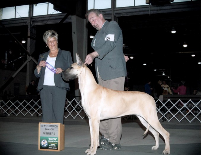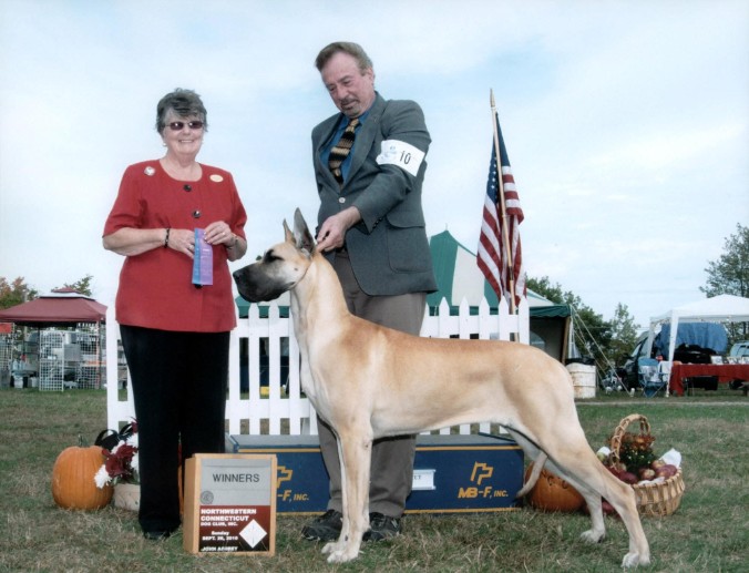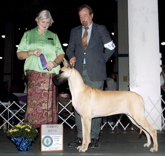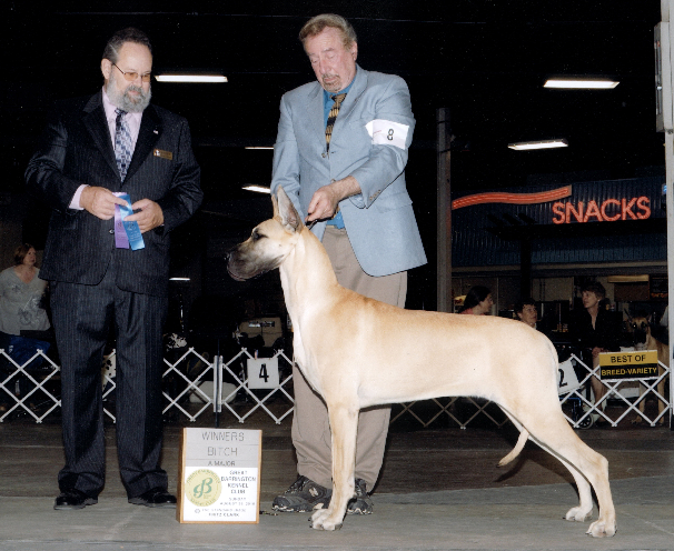 Result: Wins best in her class ~ GREAT DANES. Puppy, 6 & Under 9 Months Bitches.